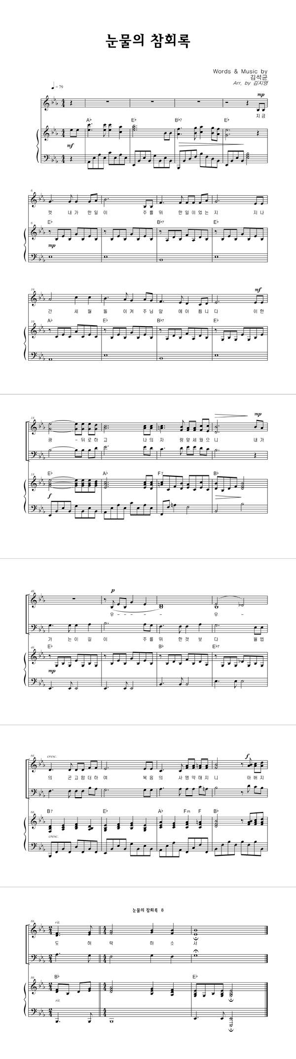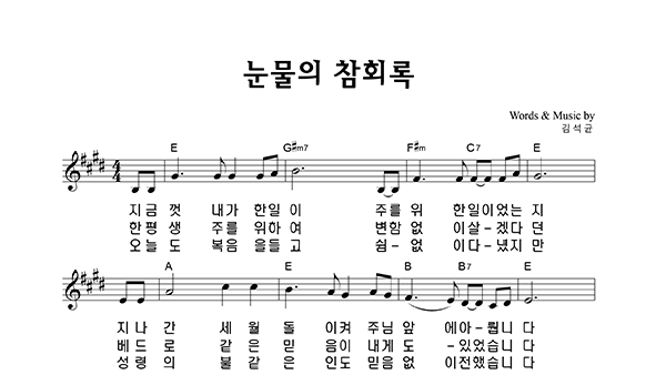 | 눈물의 참회록 | 2부 + 피아노 반주 |