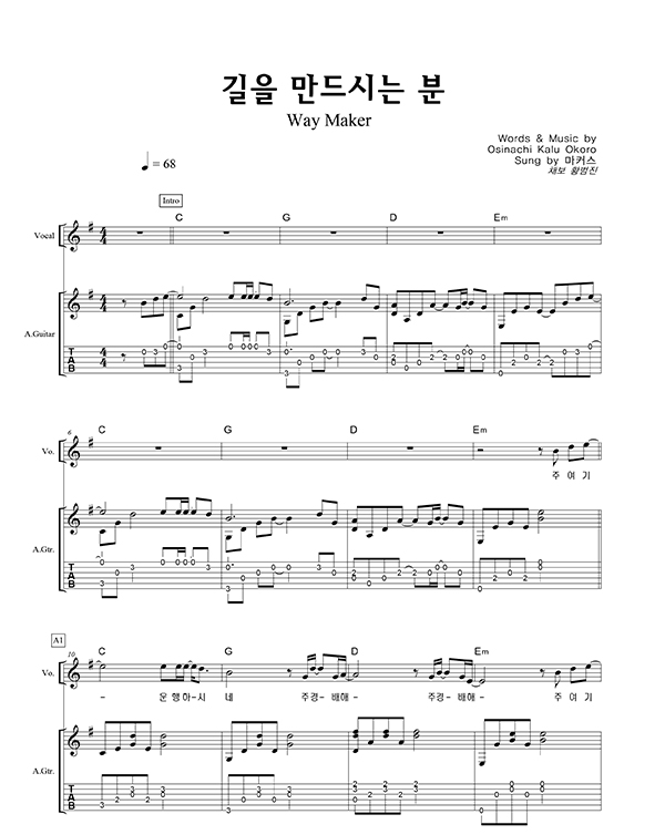 기타 타브 악보 | Osinachi Kalu Okoro | Osinachi Kalu Okoro | 황범진 |