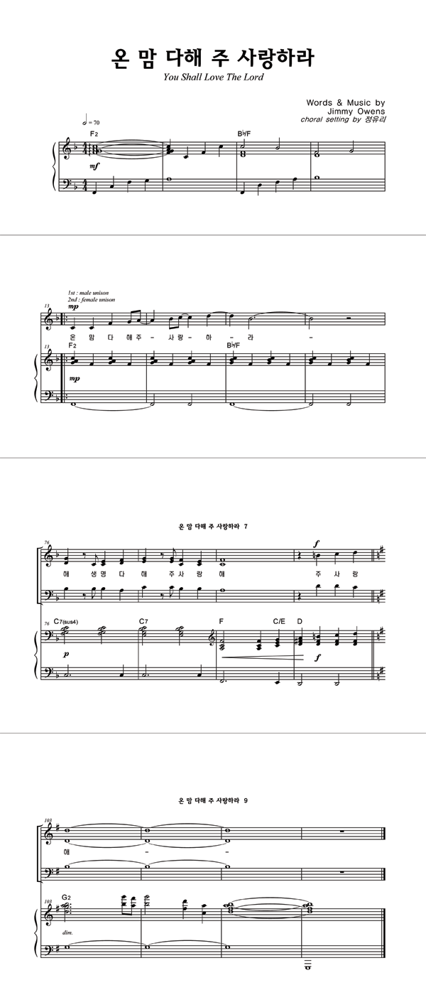 | 온 맘 다해 주 사랑하라 | 성가 4부 + 피아노 반주 |