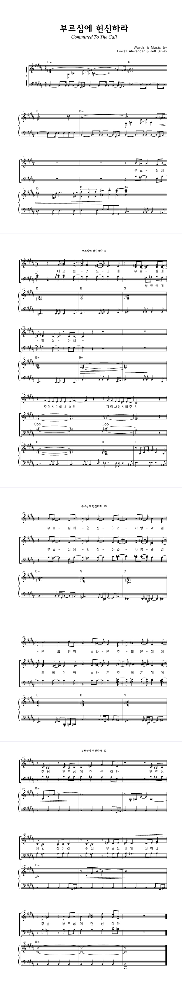 | 부르심에 헌신하네 | 성가 4부 + 피아노 반주 |