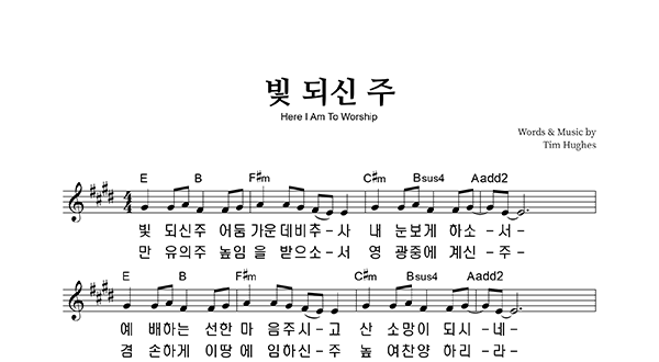 | 빛되신 주 | 성가 4부 + 피아노 반주 |