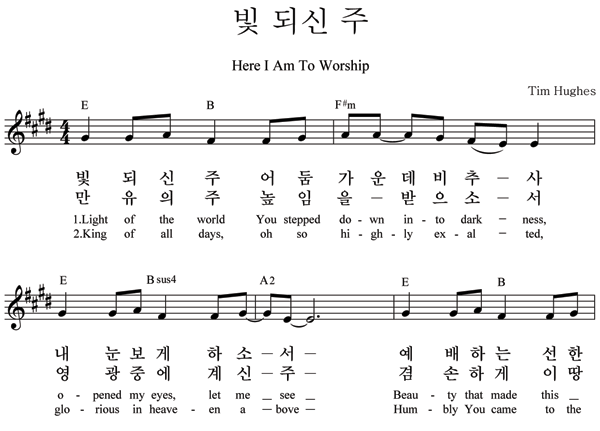 | 빛되신 주 | 성가 2부 + 피아노 반주 |