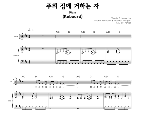 '주의 집에 거하는 자' 의 다른 악보형식