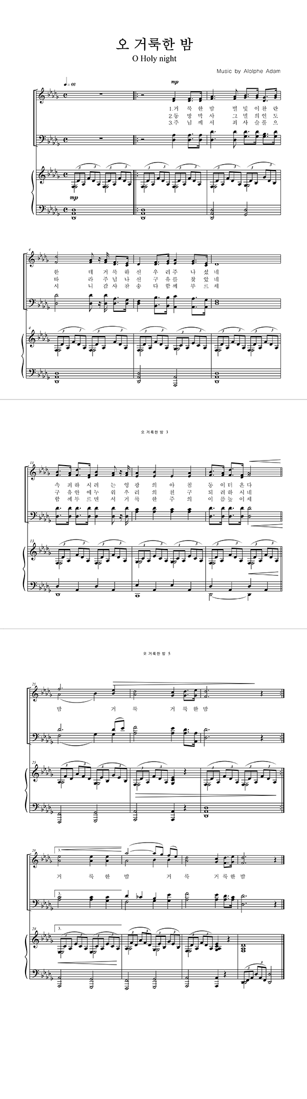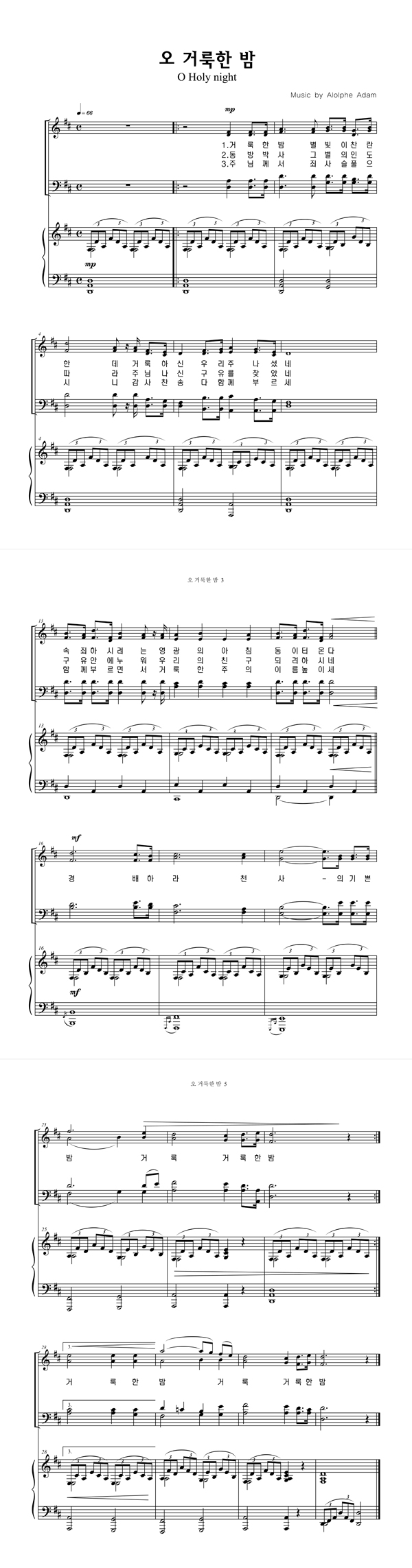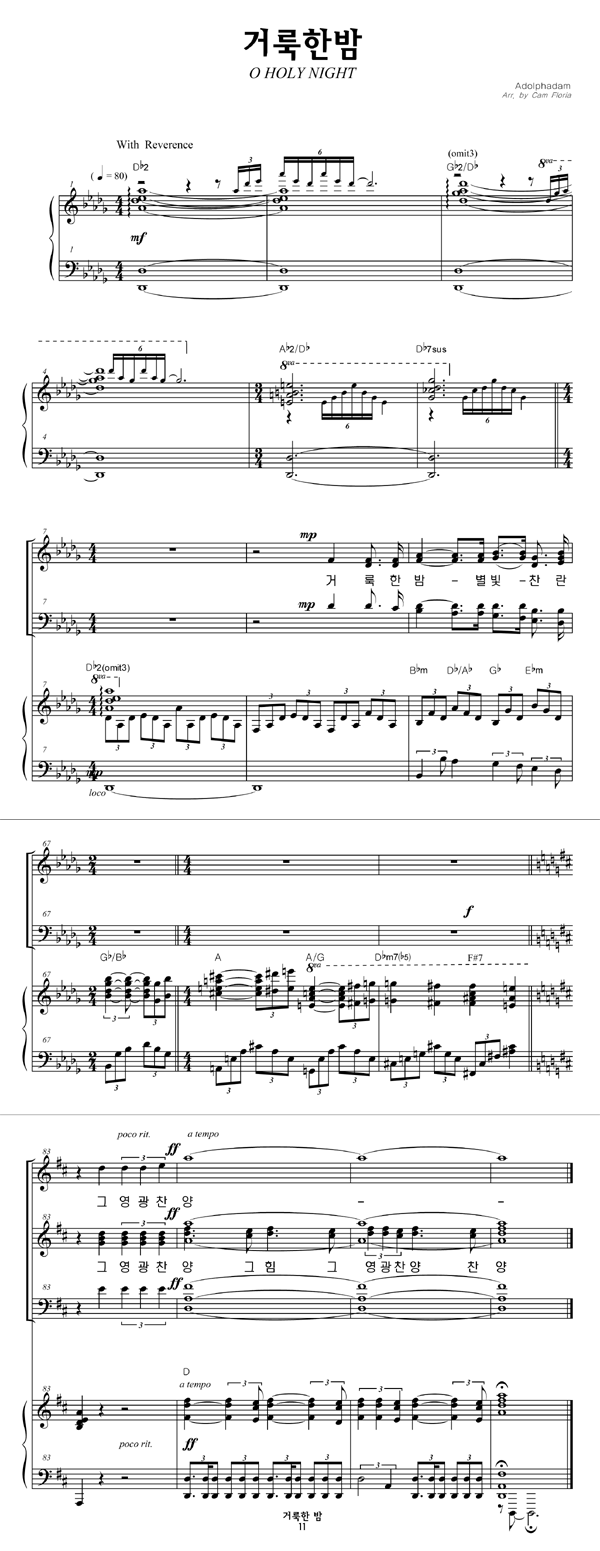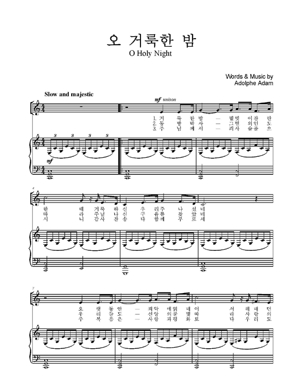 | 오 거룩한 밤 | 성가 4부 + 피아노 반주 |