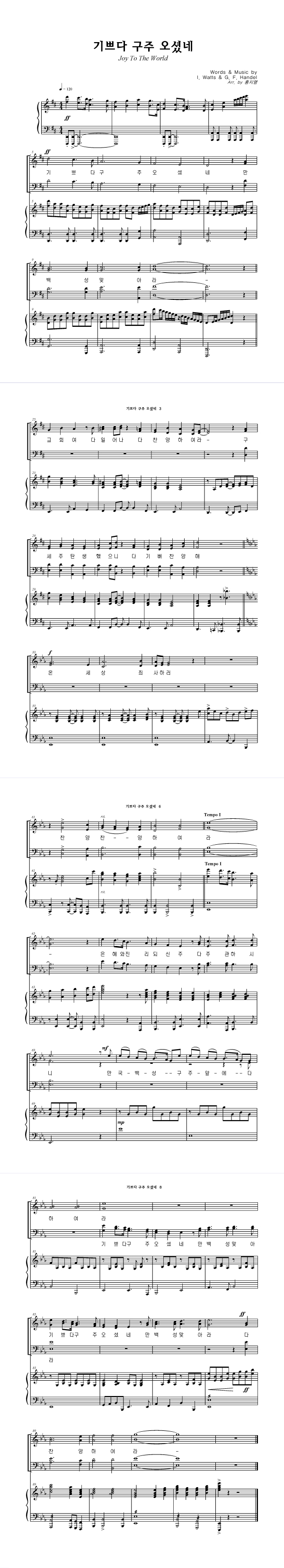 | 기쁘다 구주 오셨네 (찬송가 115장) | 성가 4부 + 피아노 반주 |