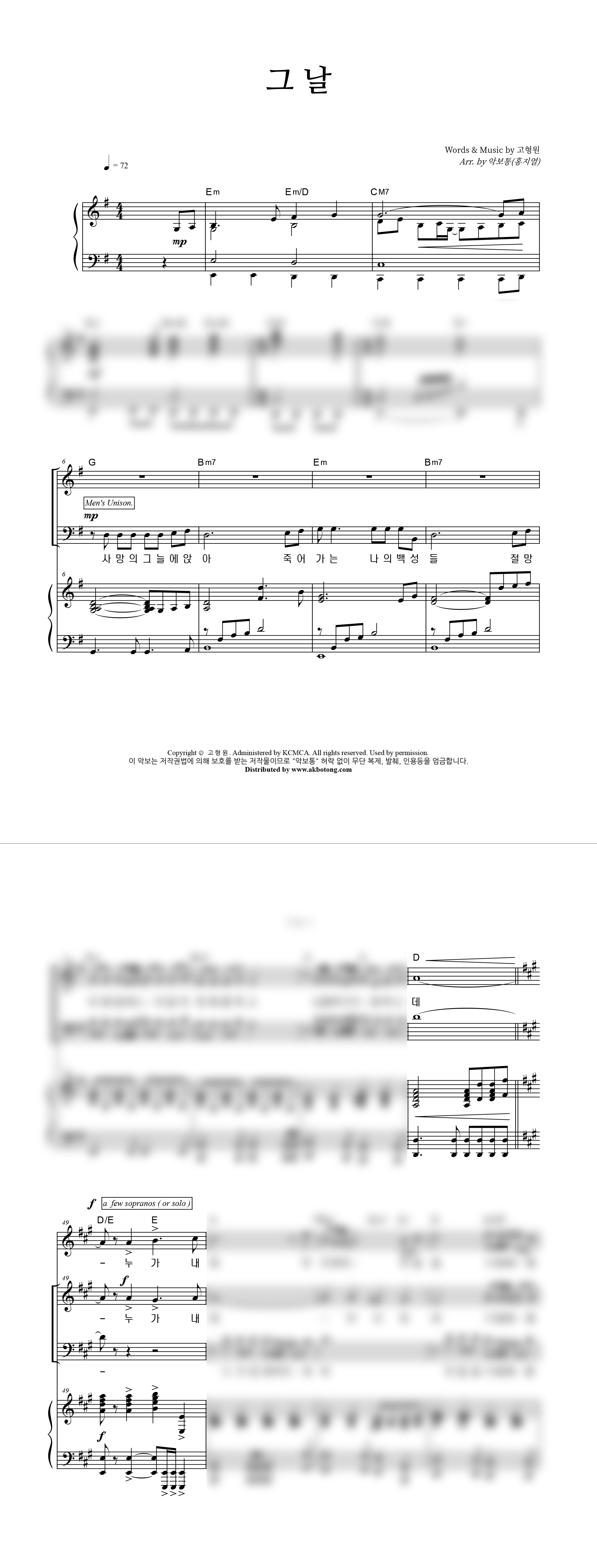 | 그 날 | 성가 3부 + 피아노 반주 |