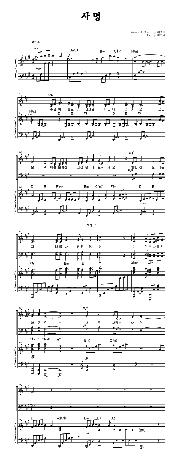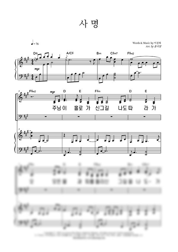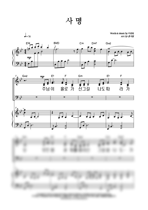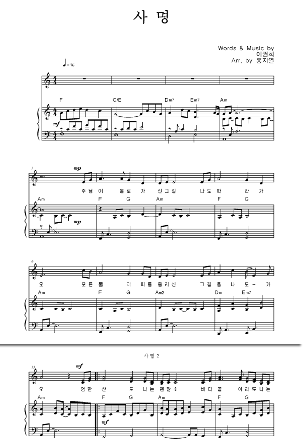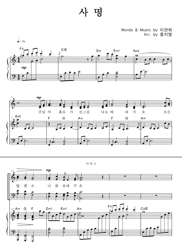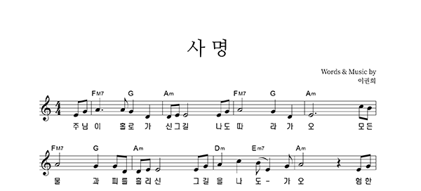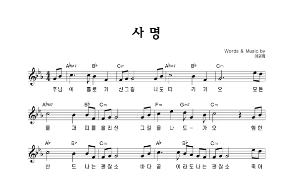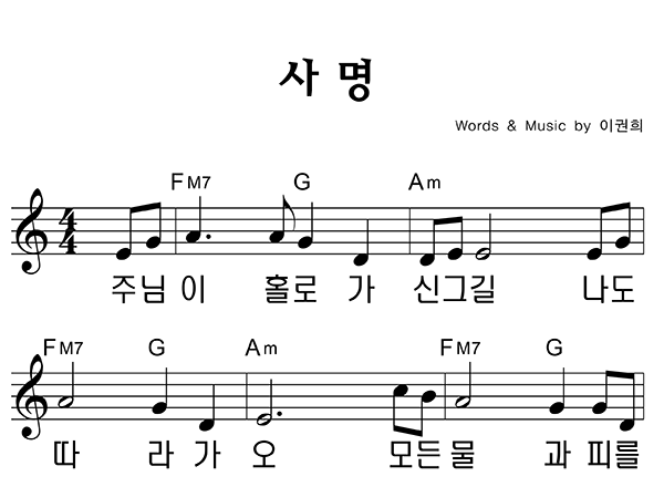 | 사명 큰글씨 | 성가 4부 + 피아노 반주 |