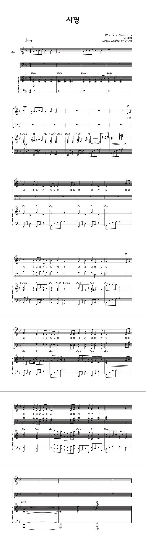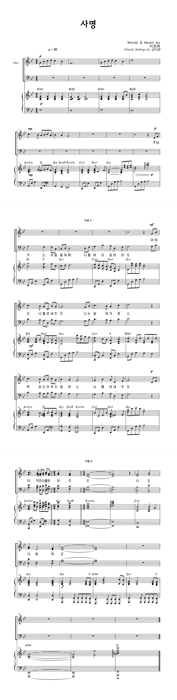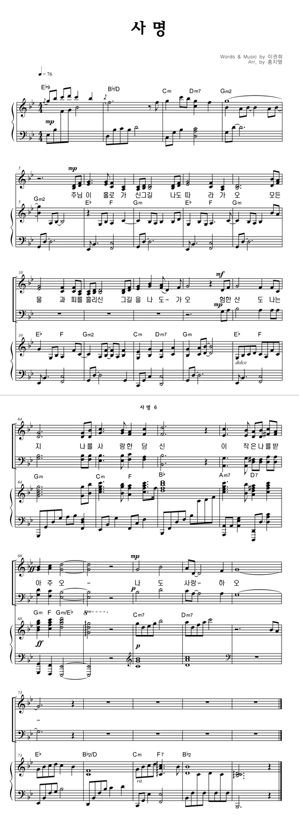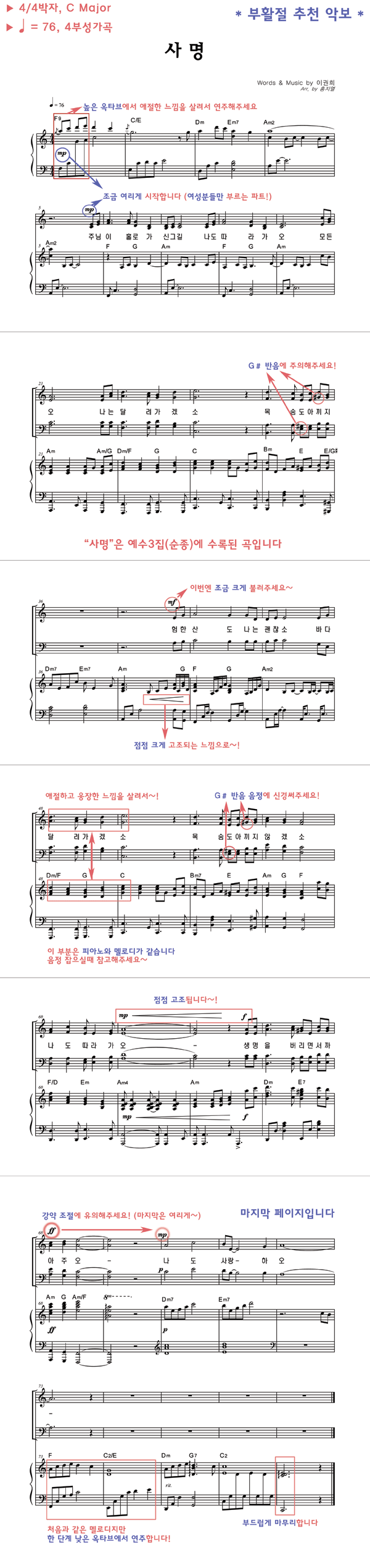| 사명 큰글씨 | 성가 4부 + 피아노 반주 |