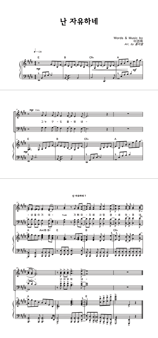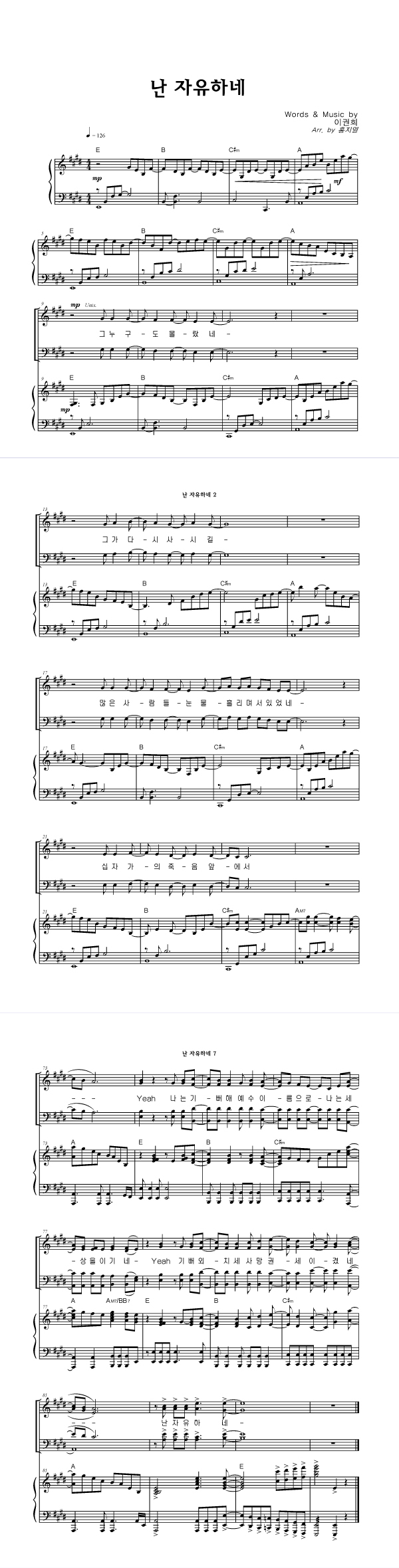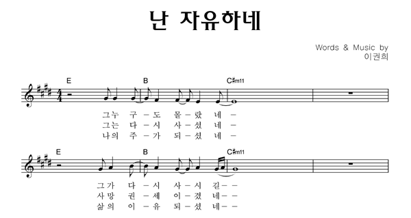 | 난 자유하네 | 성가 2부 + 피아노 반주 |