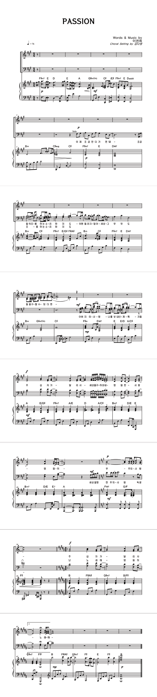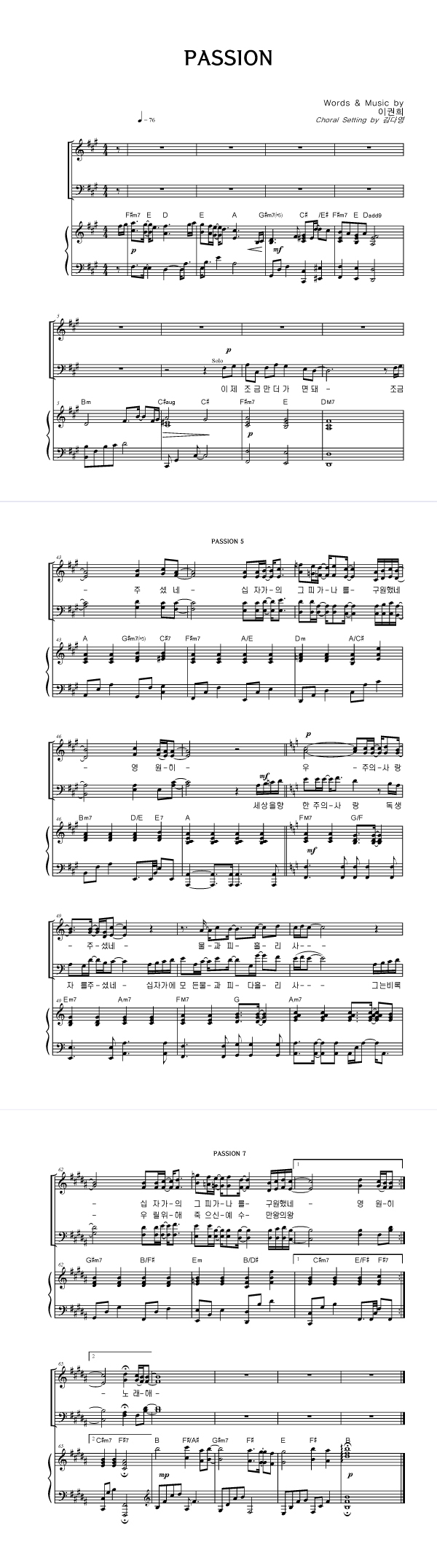 | PASSION | 성가 3부 + 피아노 반주 |
