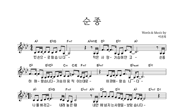 | 순종 | 성가 4부 + 피아노 반주 |