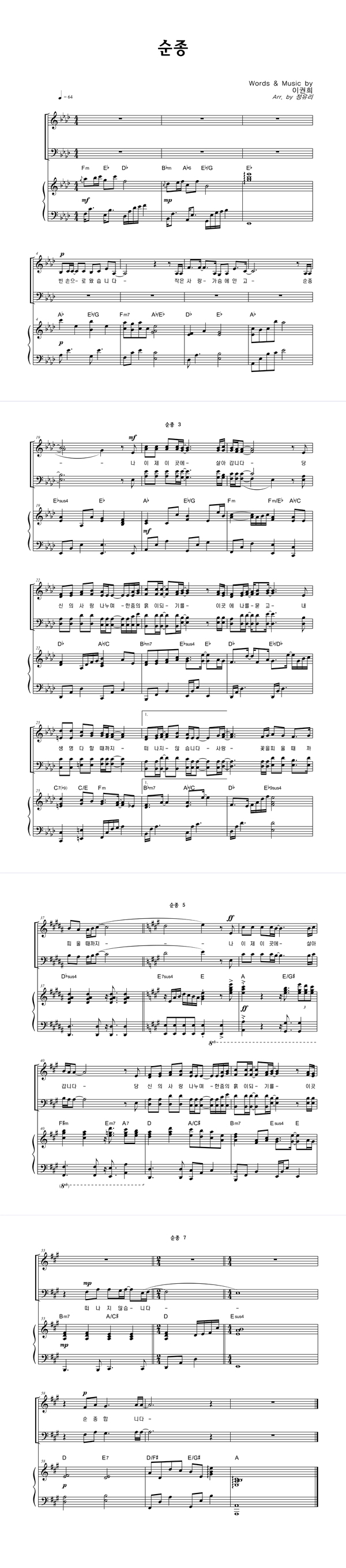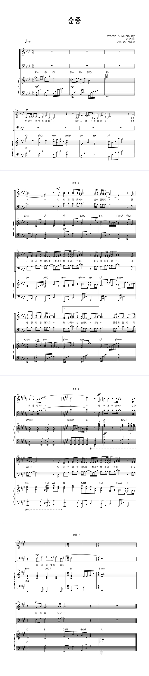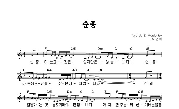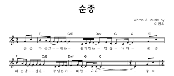 | 순종 | 성가 2부 + 피아노 반주 |