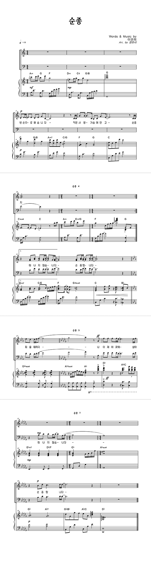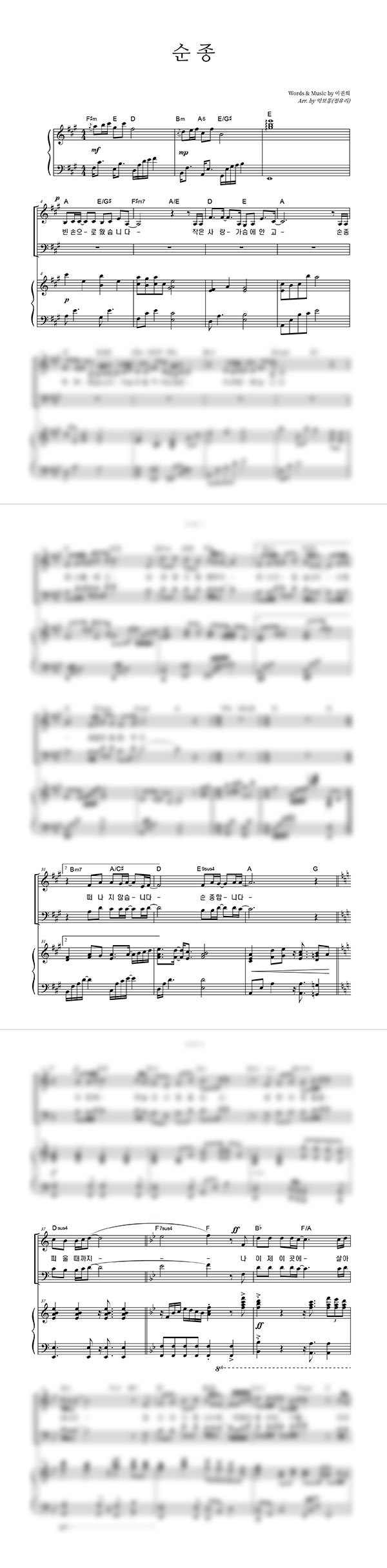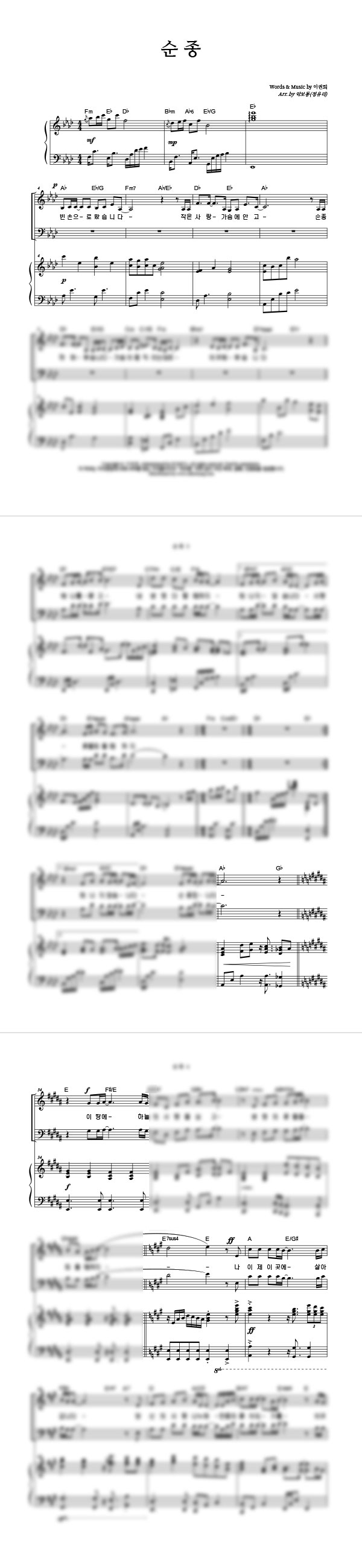 | 순종 | 성가 2부 + 피아노 반주 |