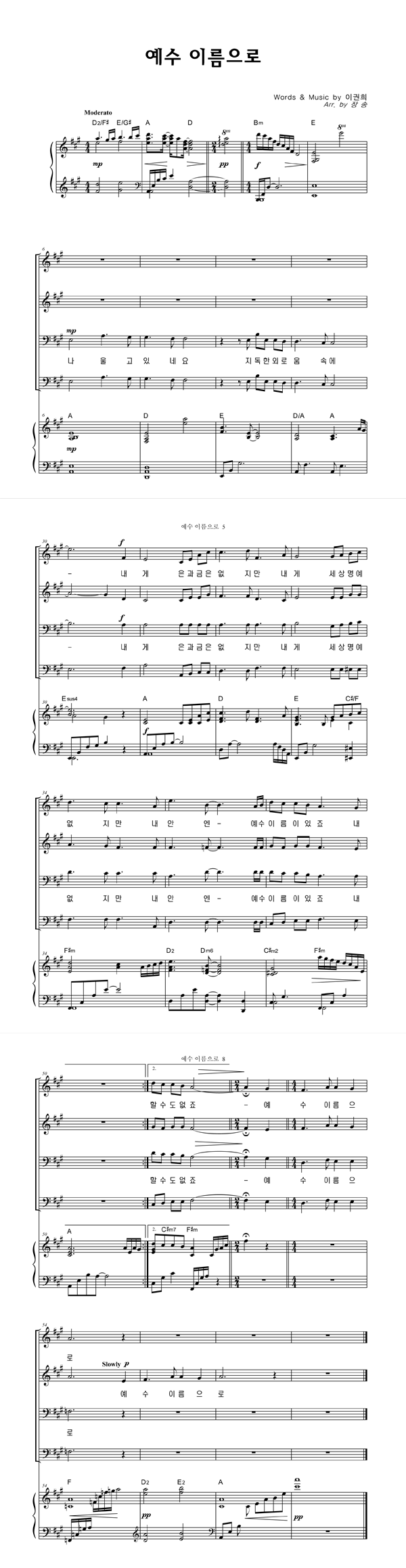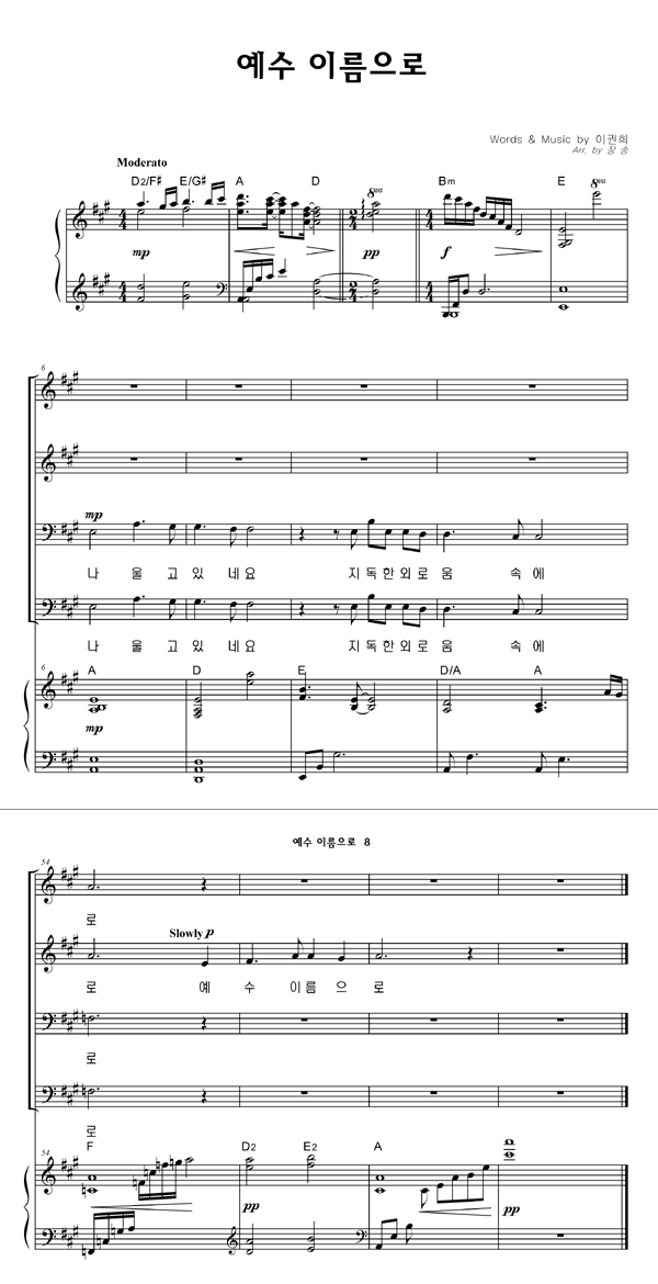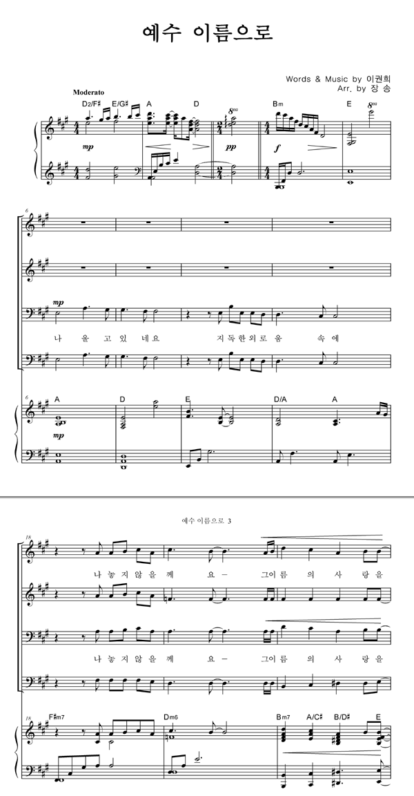 | 예수 이름으로 | 성가 4부 + 피아노 반주 |