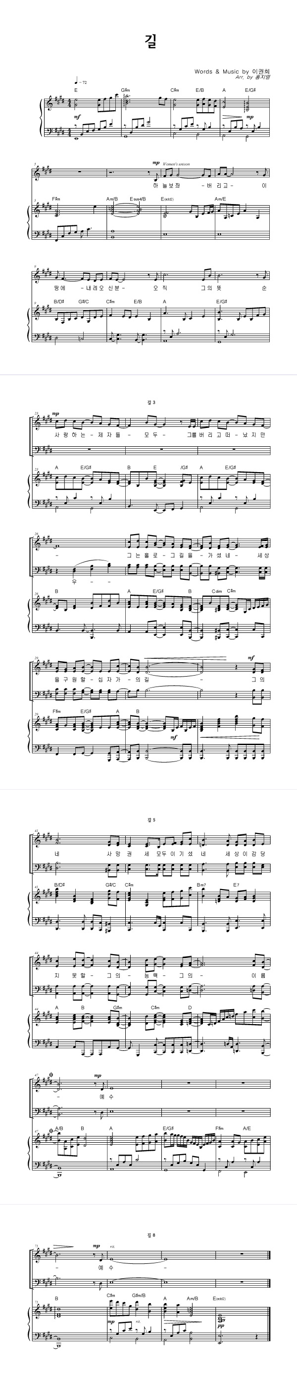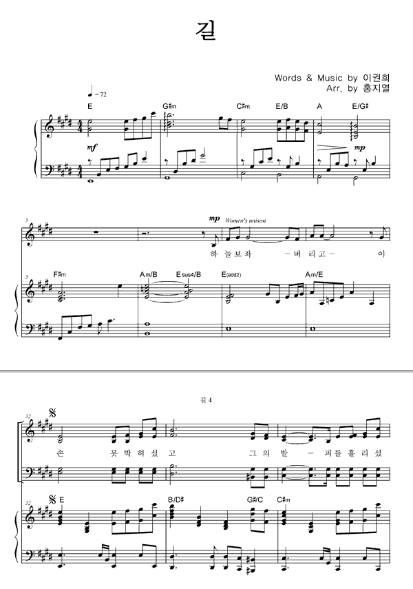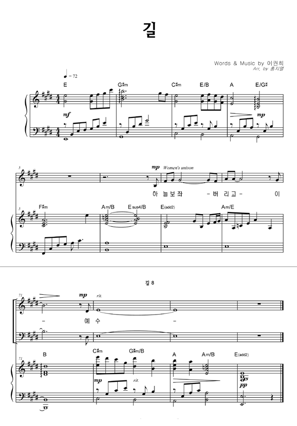 | 길 | 성가 4부 + 피아노 반주 |