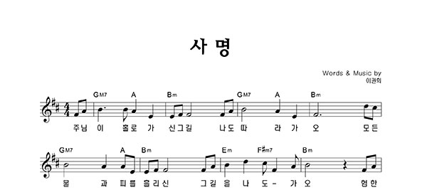 | 사명 | 성가 2부 + 피아노 반주 |