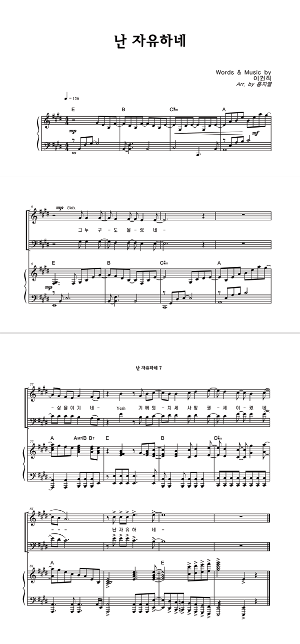| 난 자유하네 | 성가 3부 + 피아노 반주 |