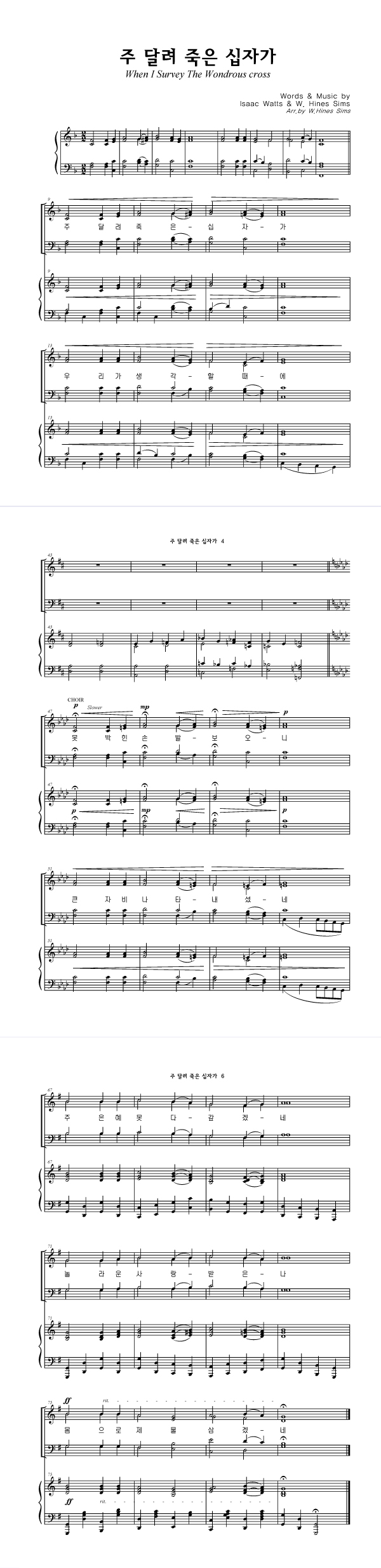 | 주 달려 죽은 십자가 | 성가 4부 + 피아노 반주 |