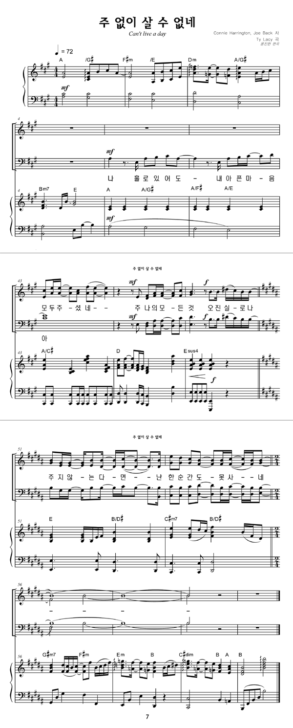 | 주 없이 살 수 없네 | 성가 3부 + 피아노 반주 |