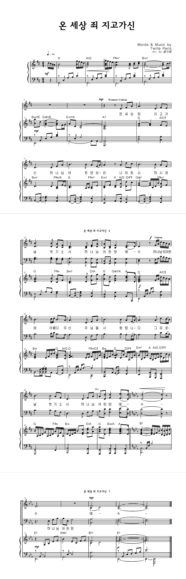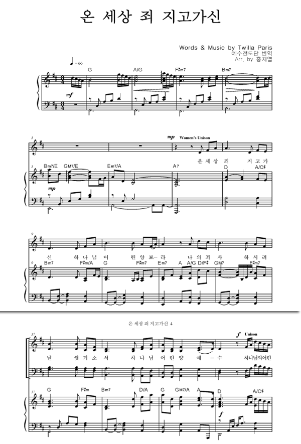 | 온 세상 죄 지고 가신 | 성가 4부 + 피아노 반주 |