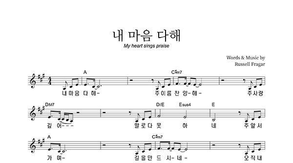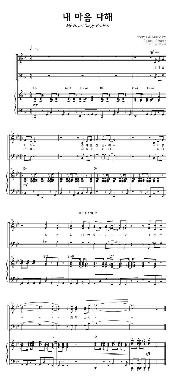 | 내 마음 다해 | 성가 2부 + 피아노 반주 |