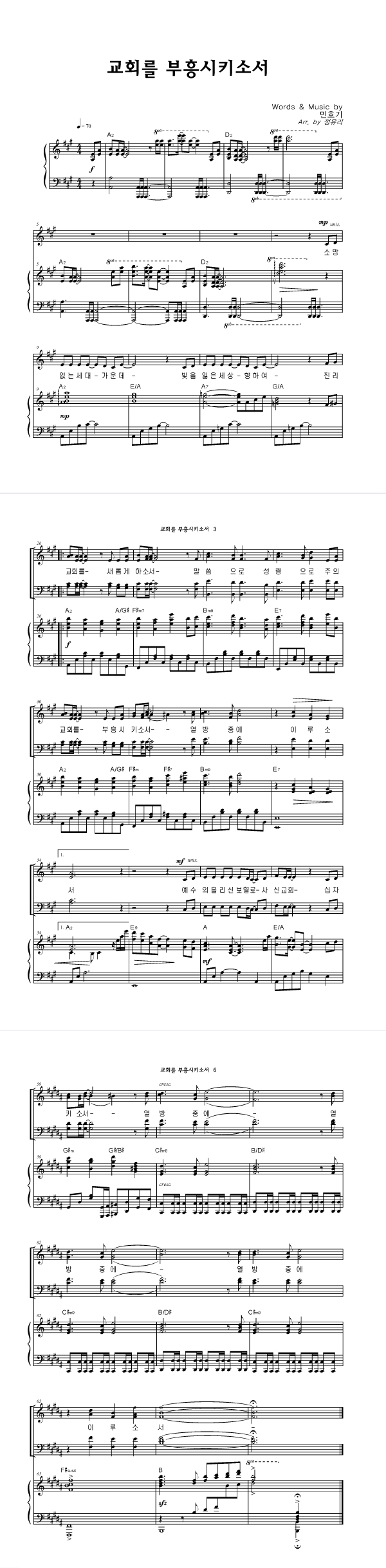 | 교회를 부흥 시키소서 | 성가 3부 + 피아노 반주 |