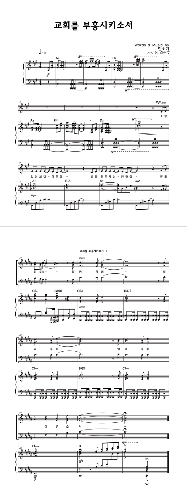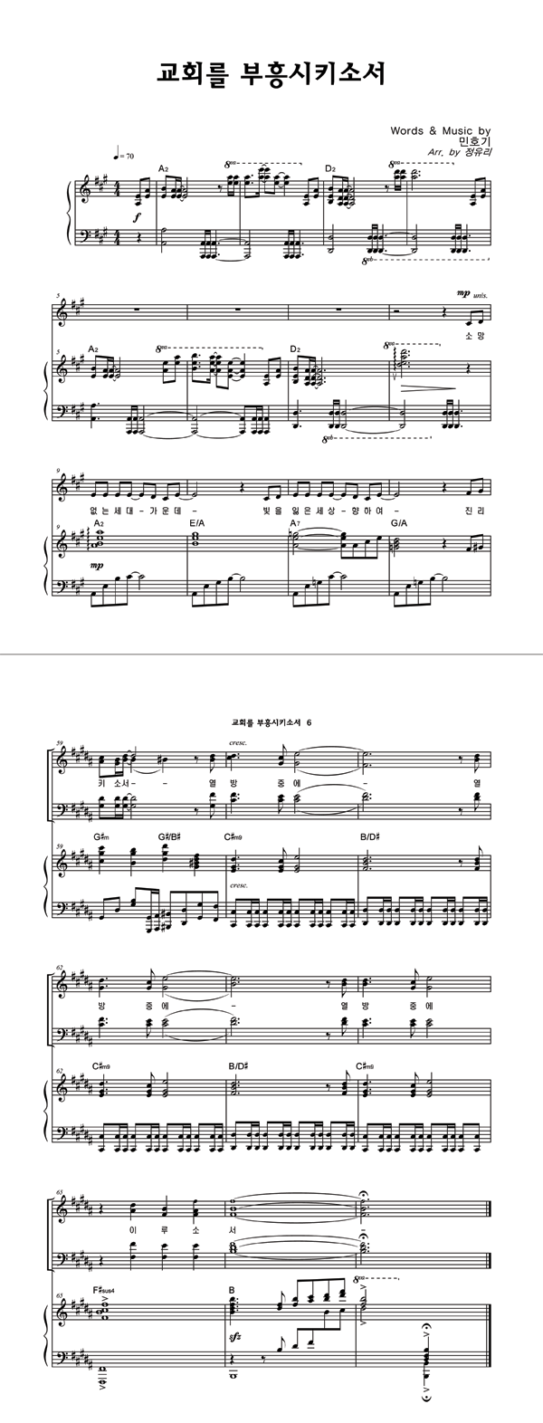 | 교회를 부흥 시키소서 | 성가 2부 + 피아노 반주 |