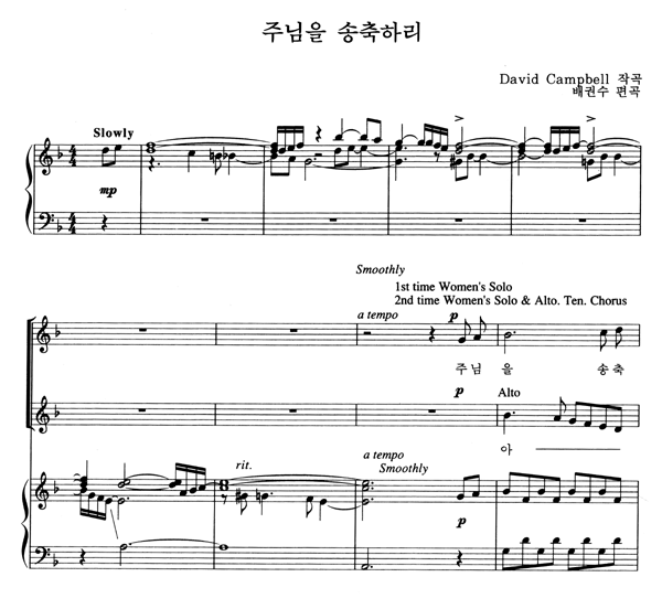| 주님을 송축하리 | 성가 4부 + 피아노 반주 |