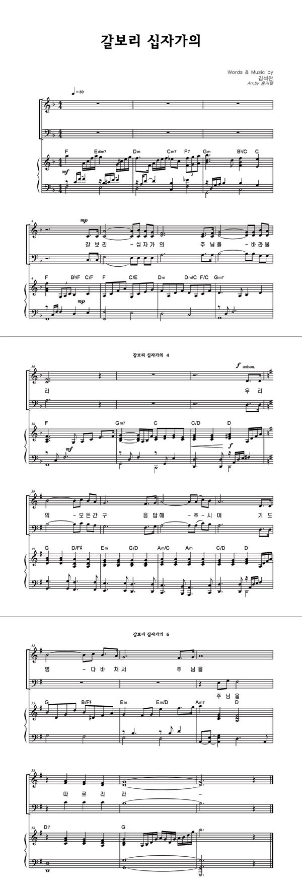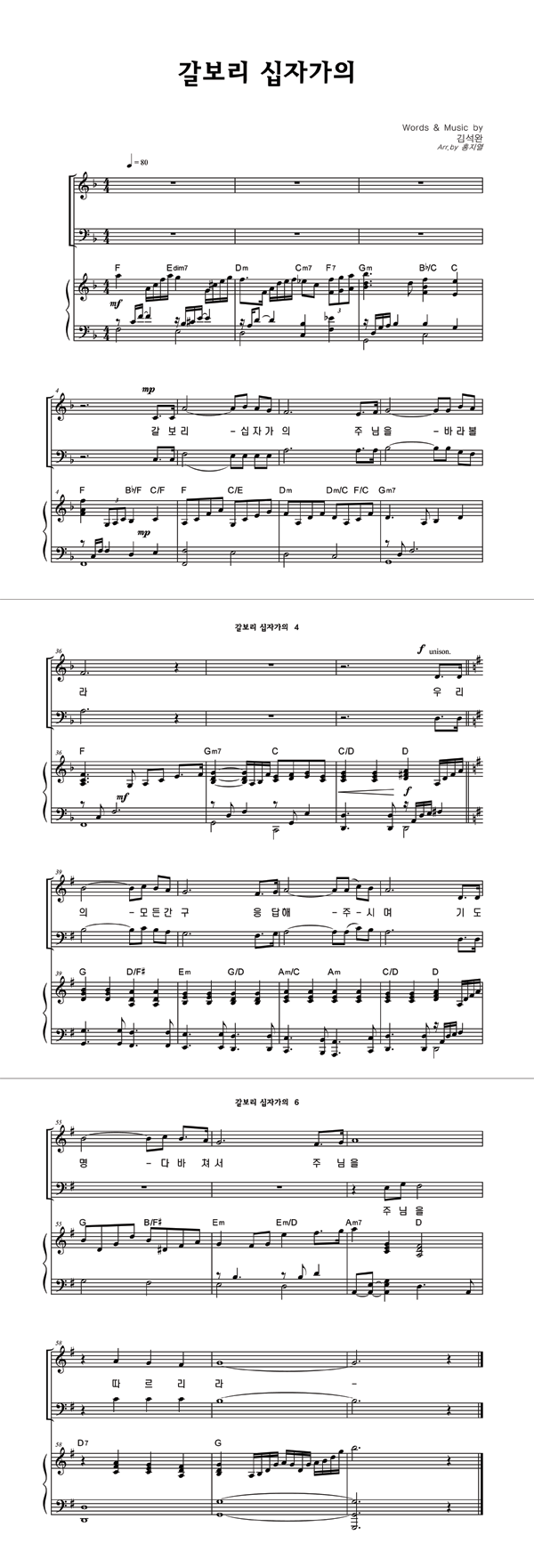 | 갈보리 십자가의 | 성가 4부 + 피아노 반주 |