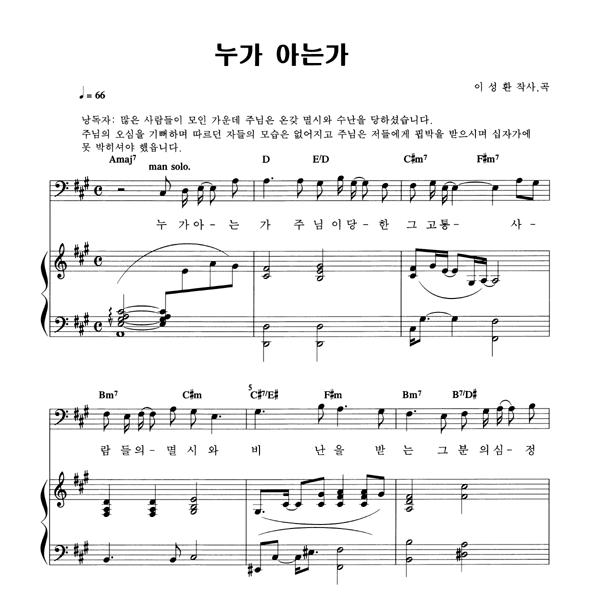 | 누가 아는가 | 성가 4부 + 피아노 반주 |