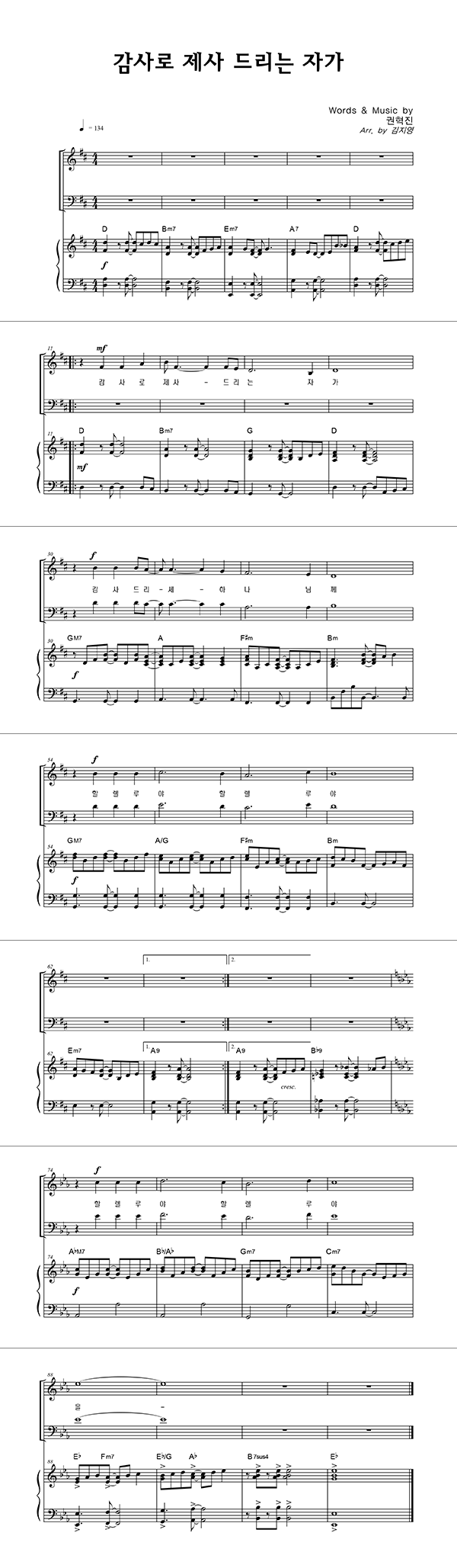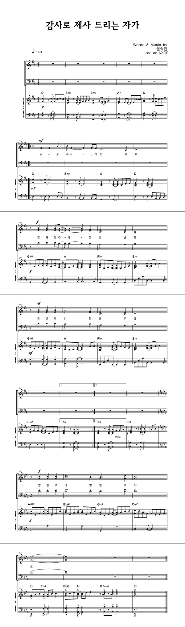 | 성가 2부 + 피아노 반주 |