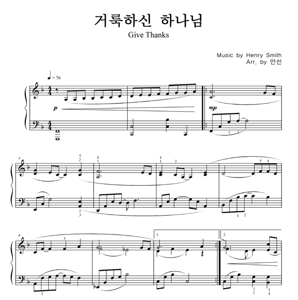 | 나 주님의 기쁨 되기 원하네 | 성가 4부 + 피아노 반주 |