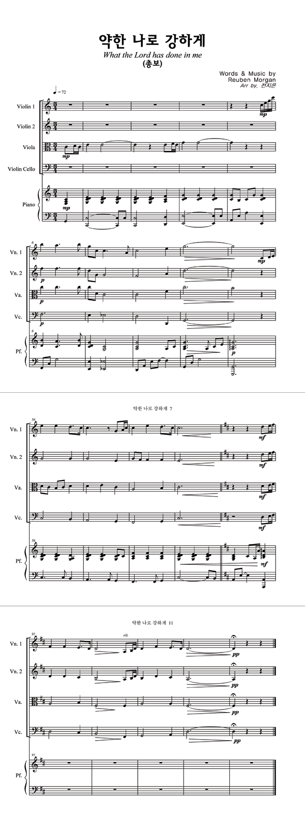 | 약한 나로 강하게 | 성가 4부 + 피아노 반주 |