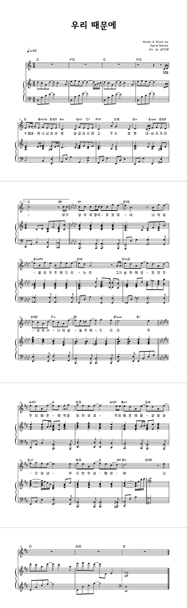 '우리 때문에' 의 다른 악보형식