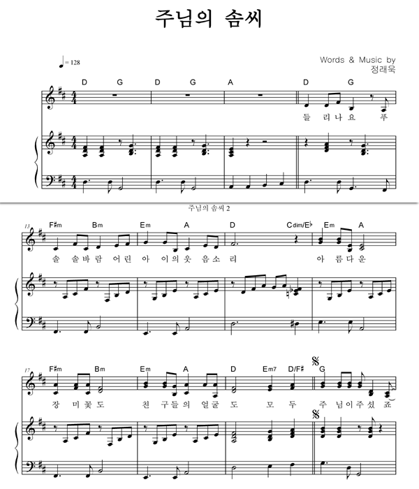 | 내 모든 삶의 행동 주 안에 | 성가 2부 + 피아노 반주 |