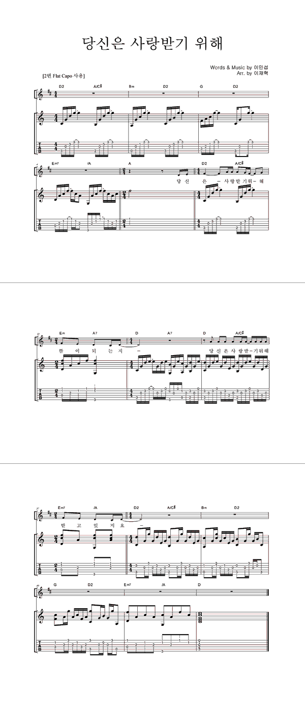 '당신은 사랑 받기 위해 태어난 사람' 의 다른 악보형식