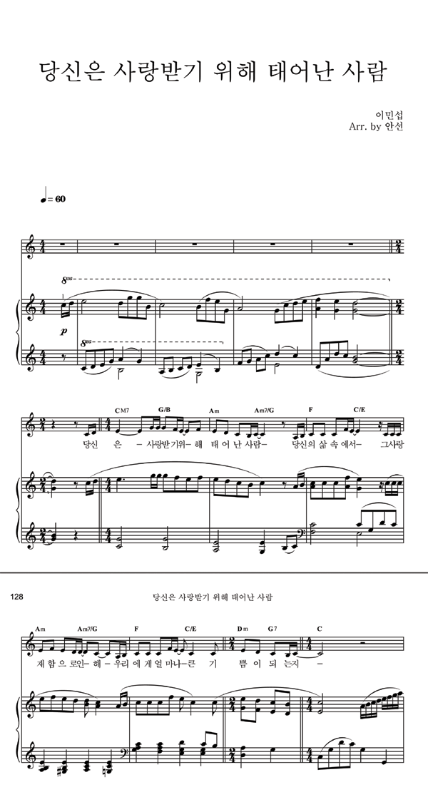 | 당신은 사랑 받기 위해 태어난 사람 | 성가 4부 + 피아노 반주 |