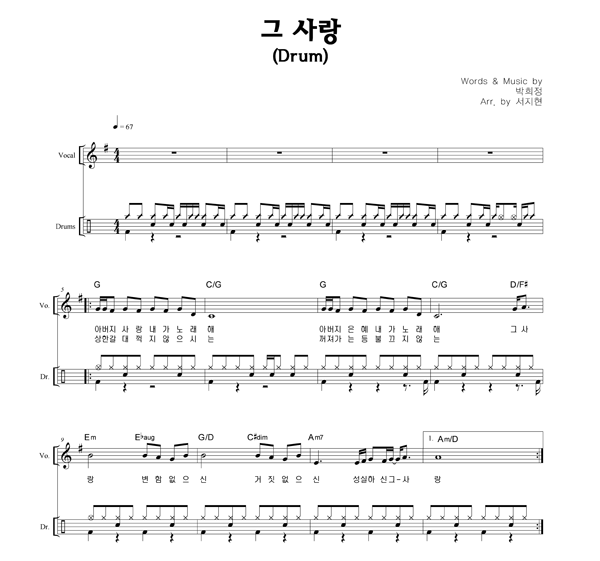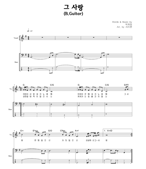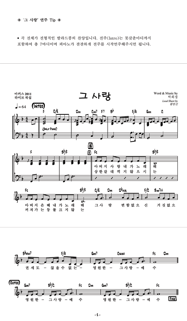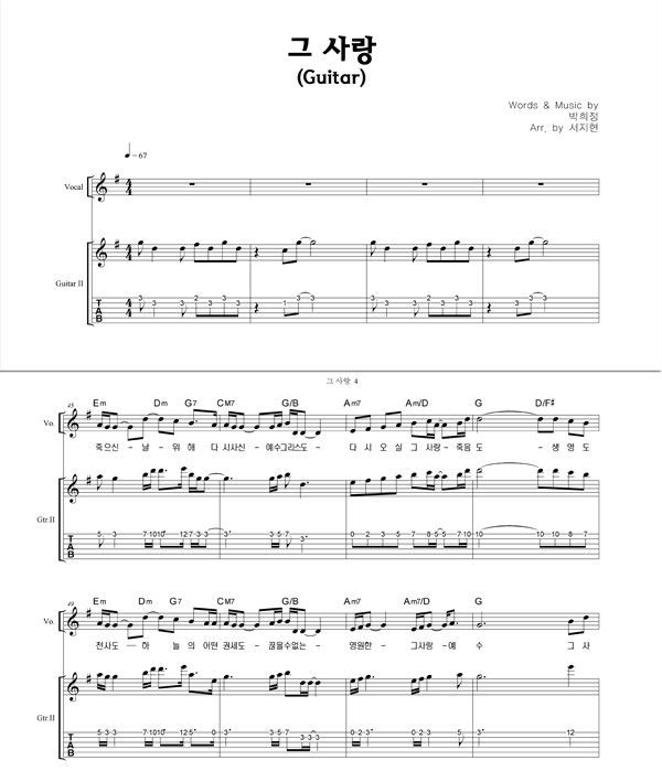'그 사랑' 의 다른 악보형식