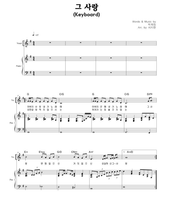 | 그 사랑 | 성가 2부 + 피아노 반주 |