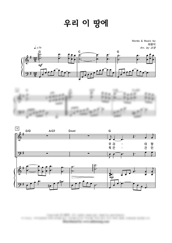 | 우리 이 땅에 | 성가 3부 + 피아노 반주 |