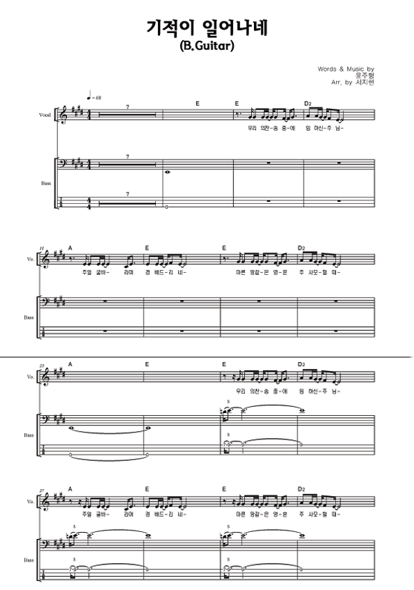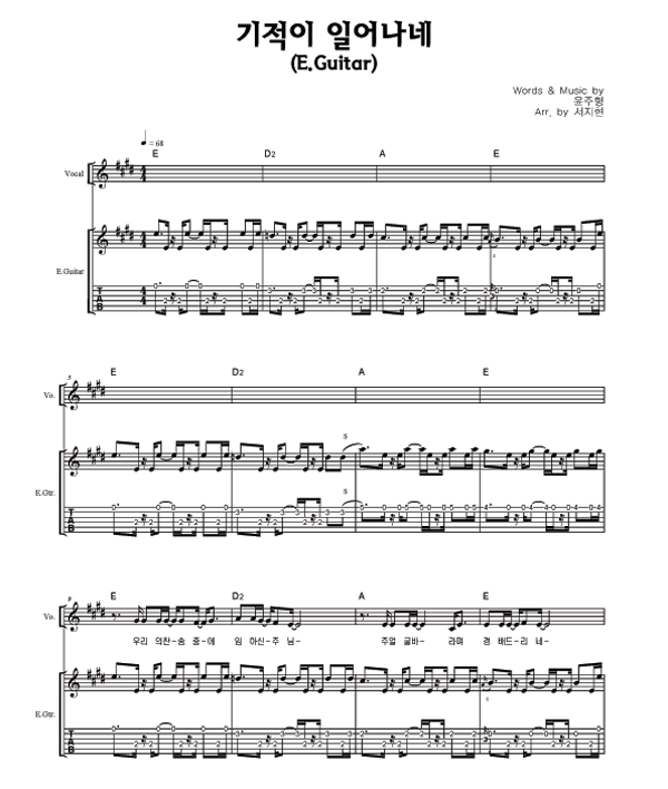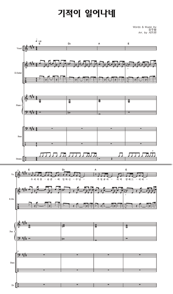 '기적이 일어나네' 의 다른 악보형식