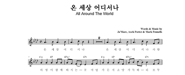 | 온 세상 어디서나 큰글씨 | 성가 4부 + 피아노 반주 |