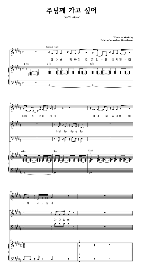 | 주님께 가고 싶어 | 성가 4부 + 피아노 반주 |