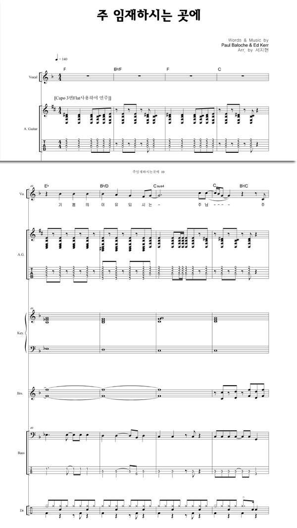 '주 임재하시는 곳에' 의 다른 악보형식