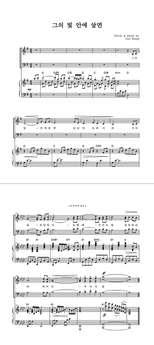 '그의 빛 안에 살면' 의 다른 악보형식