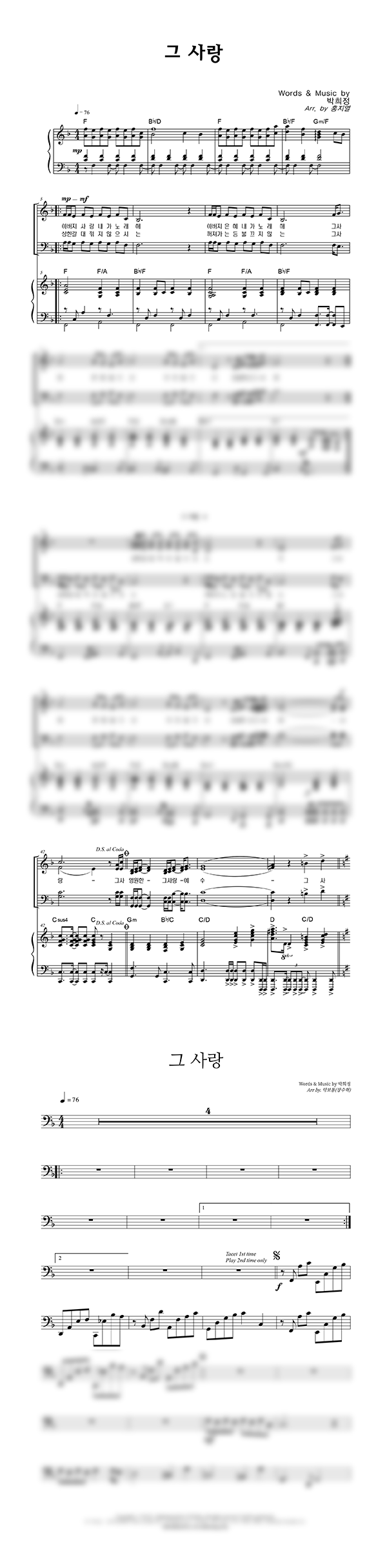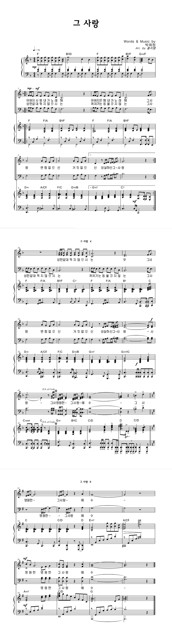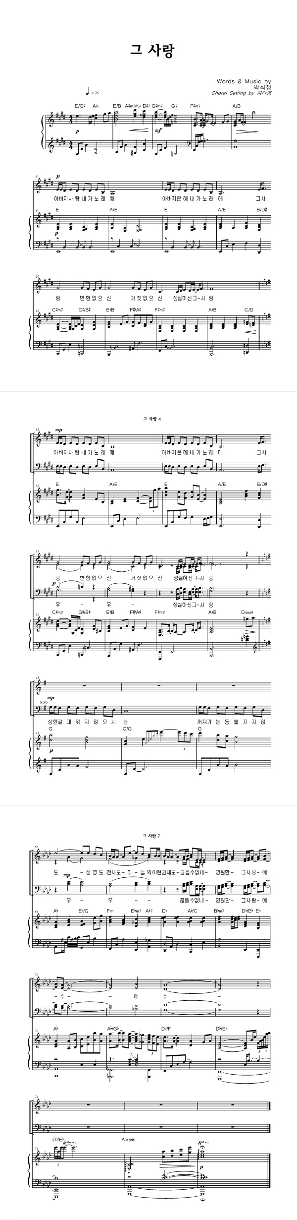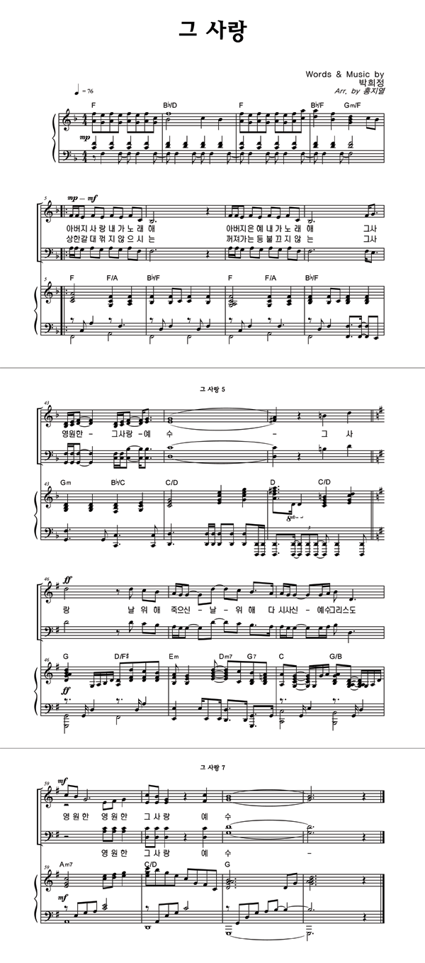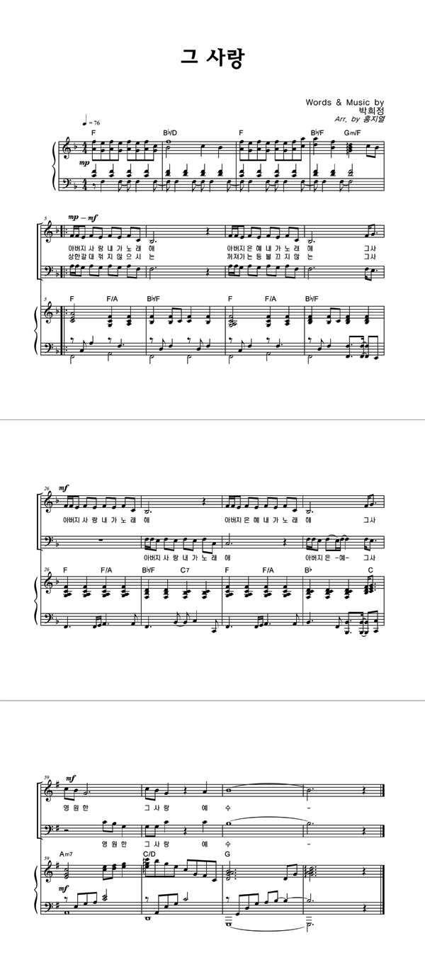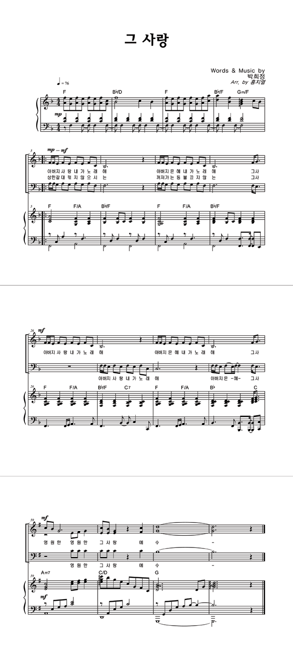 | 그 사랑 | 성가 2부 + 피아노 반주 |