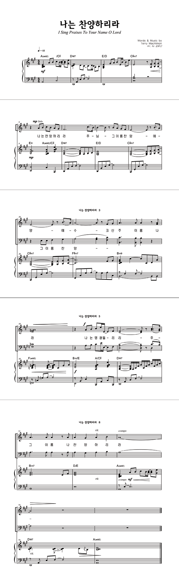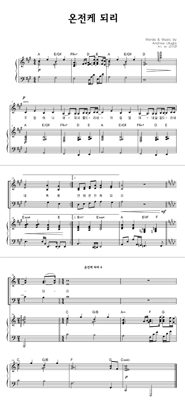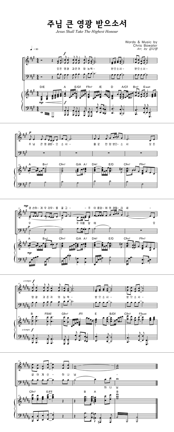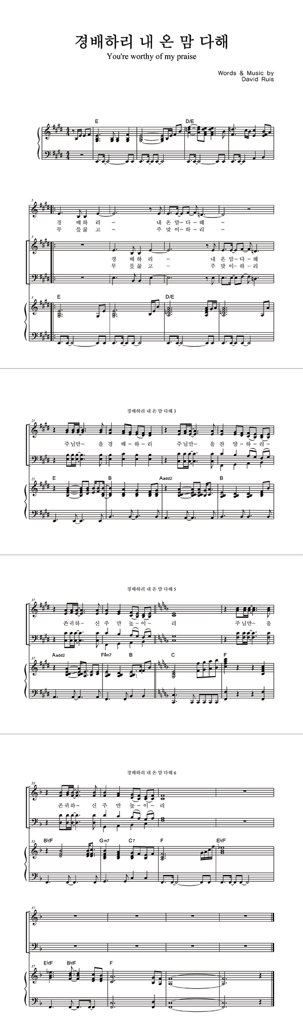 | 경배하리 내 온 맘 다해 | 성가 4부 + 피아노 반주 |