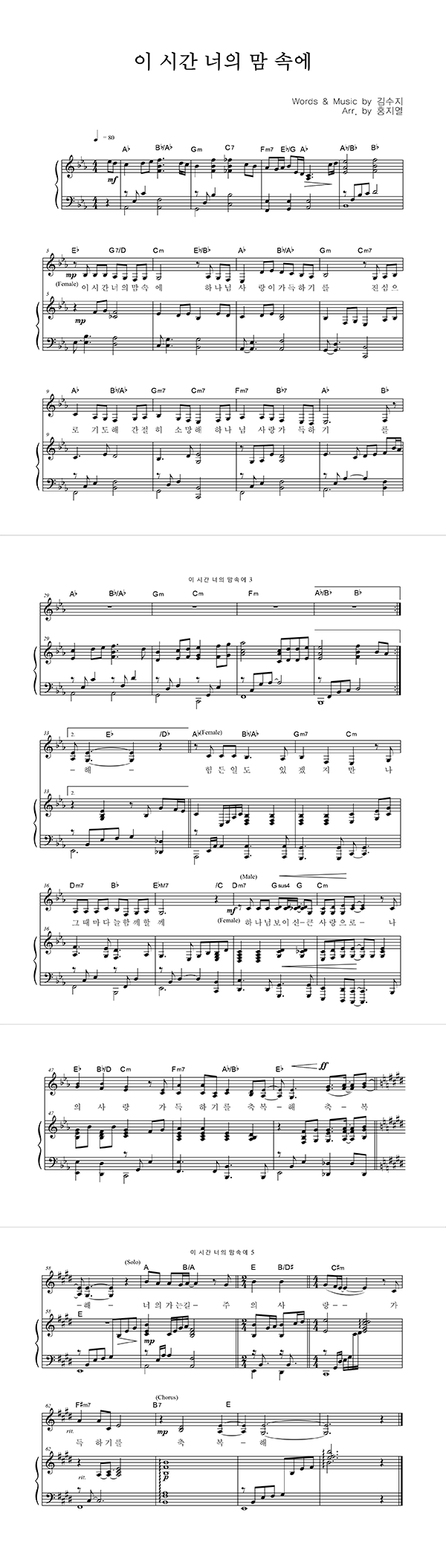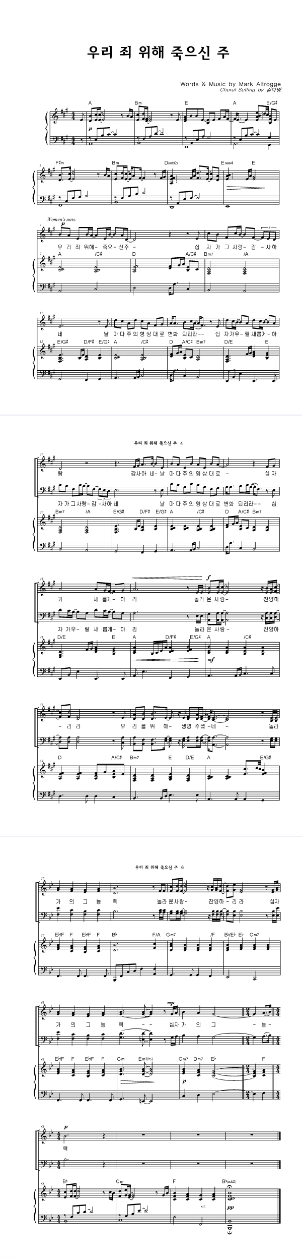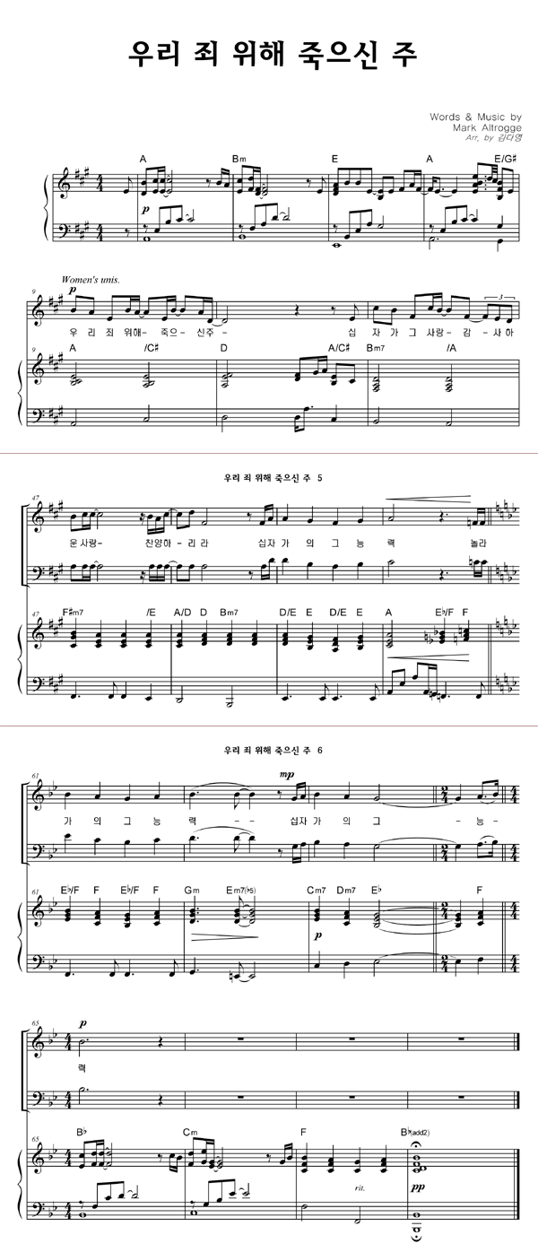 | 경배하리 내 온 맘 다해 | 성가 4부 + 피아노 반주 |