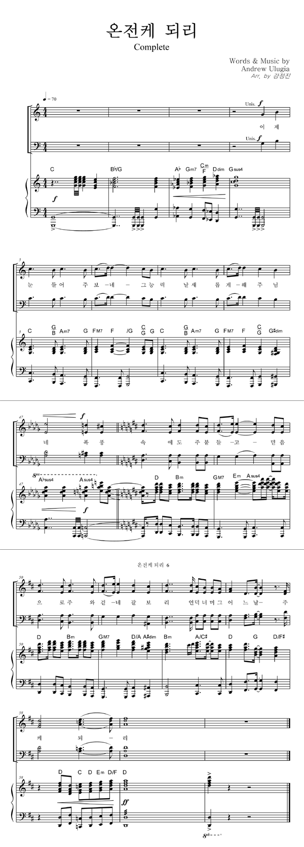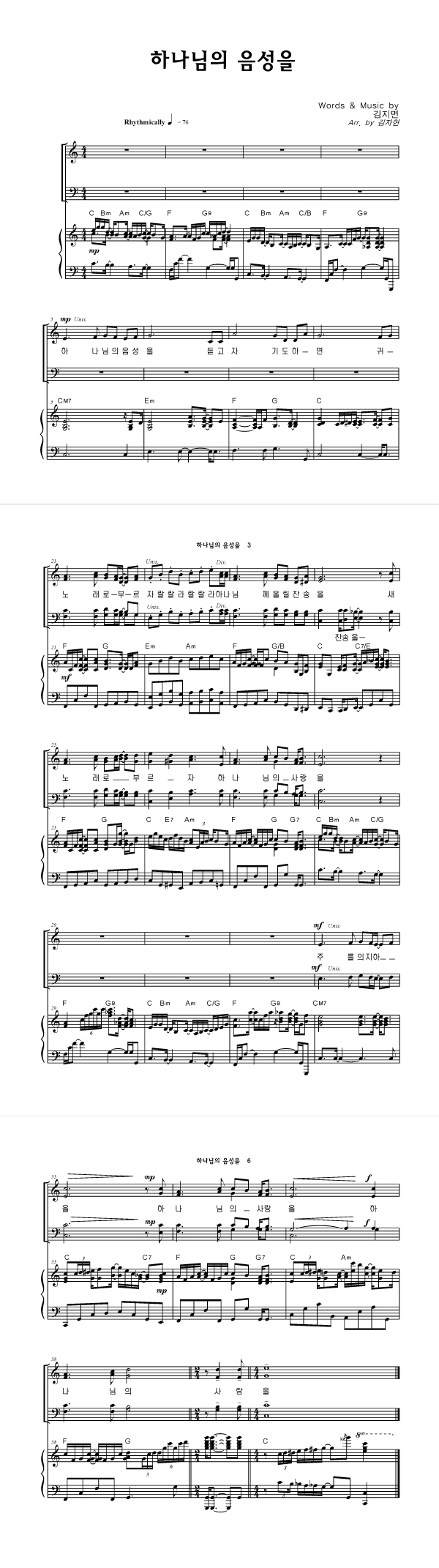 | 한라에서 백두까지 백두에서 땅 끝까지 | 성가 3부 + 피아노 반주 |