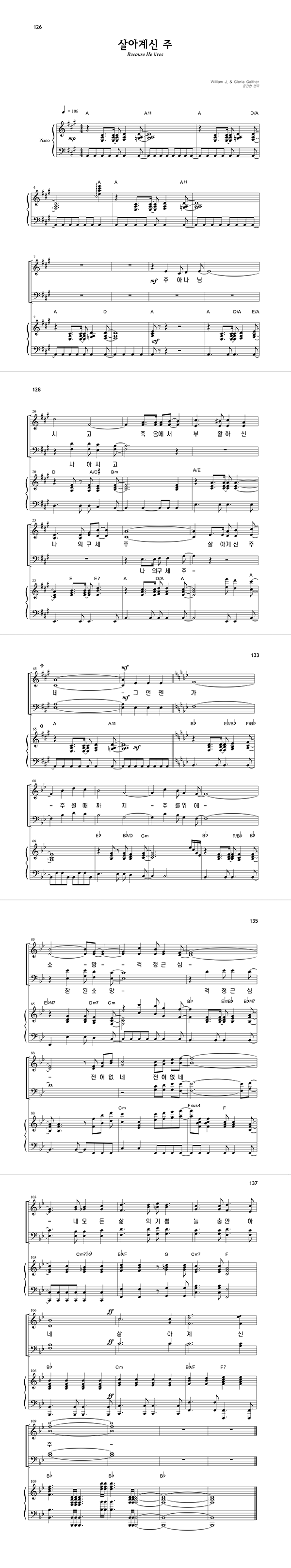 | 한라에서 백두까지 백두에서 땅 끝까지 | 성가 2부 + 피아노 반주 |